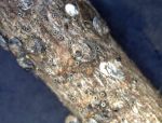 - Transverse view of gloomy scale feeding on a maple brach